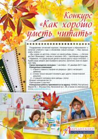 Журнал "Аккредитация в образовании" объявляет новый конкурс "Как хорошо уметь читать". Конкурсные работы - фотографии и рисунки, эссе на заданную тему. Сроки проведения конкурса - 1 сентября - 31 декабря 2017 года. Номинации:
