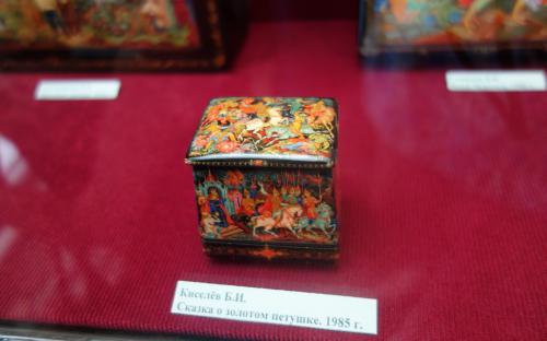 Особая страница истории Палеха представлена в Музее лаковой миниатюры. Коллекция лаковой миниатюры и графики насчитывает более семи тысяч экспонатов. Среди них работы основоположников палехского искусства - И.И.Голикова, И.М.Баканова, И.И.Зубкова, И.П.Вакурова. А.В.Котухина, И.В.Маркичева. Коллекция Музея позволяет проследить историю развития промысла, увидеть новые тенденции в стилистике и тематике палехских работ вплоть до сегодняшнего дня.