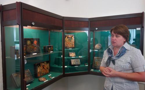 Первым в экскурсионной программе был открытый в 2014 году в рамках празднования 90-летия искусства палехской лаковой миниатюры Музей иконы. Древние иконы XIV-XVII вв. – результат собирательской деятельности палешан, которая активно велась ещё в XVIII веке. Сегодня в древнерусском отделе хранится почти тысяча икон, более 1,5 тысяч единиц иконописной графики, предметы народно-прикладного искусства.