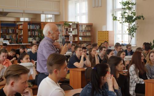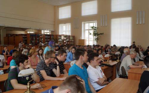 При огромном скоплении публики 24 мая в читальном зале научной литературы библиотеки ИГЭУ состоялась очередная встреча в рамках студенческого проекта «Живая книга» в продолжение сезона краеведческих встреч-2018. На этот раз гостем краеведческой площадки стал историк, писатель, аналитик, управляющий делами председателя Ивановской городской Думы Александр Михайлович Семененко.
